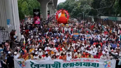 চারুকলার বর্ণাঢ্য ‘বৈশাখী শোভাযাত্রায়’ নতুন বছরকে বরণ